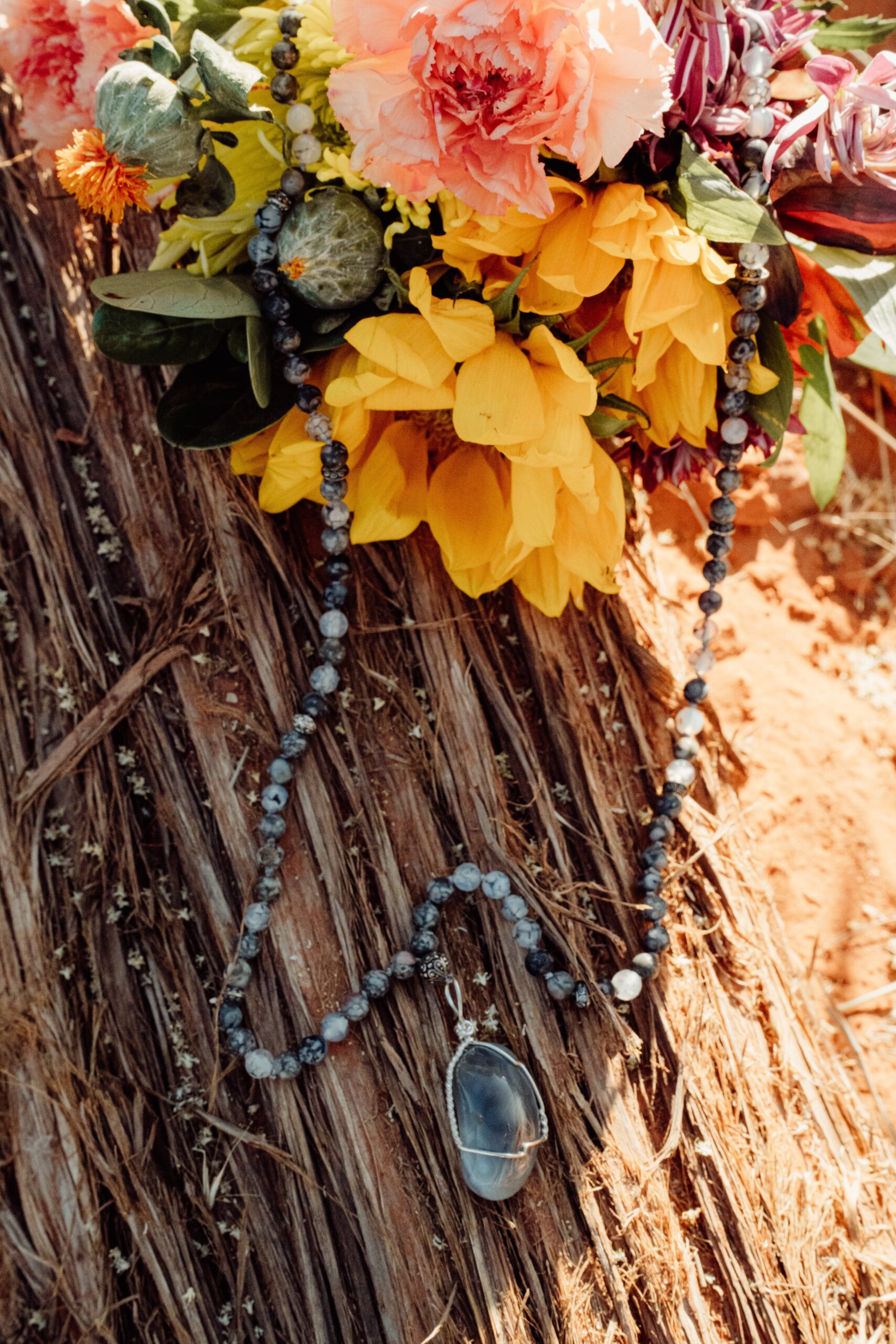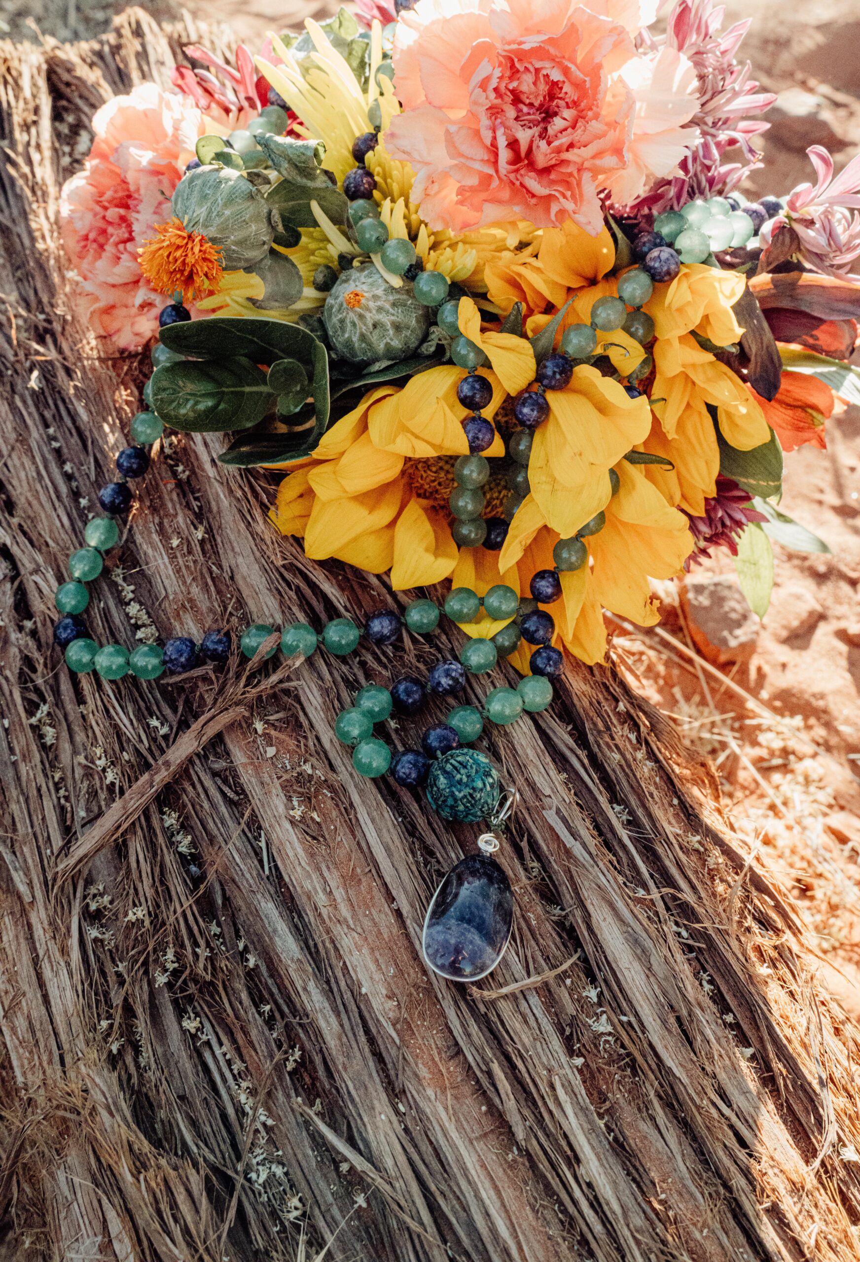 Dawn creates custom made mala/prayer beads, hand-crafted using the traditional 108 beads, individually knotted between each bead, and infused with essential oils, prayer and meditation. She is inspired to share the gift of malas with others, offering custom-made pieces, as well as providing mala-making classes and training to individuals and groups in the Sedona Arizona area.